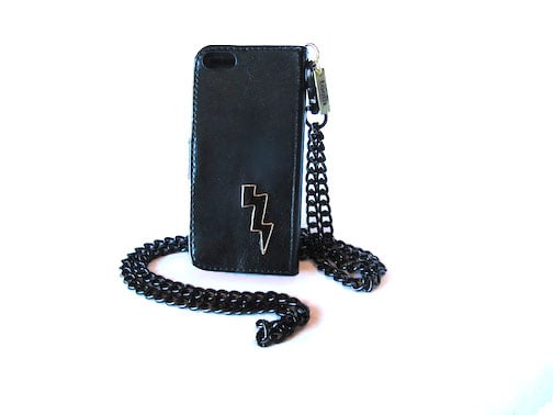 Ziggy is a totally rad vegan leather iPhone case alighted with a colored enamel metal lightning bolt